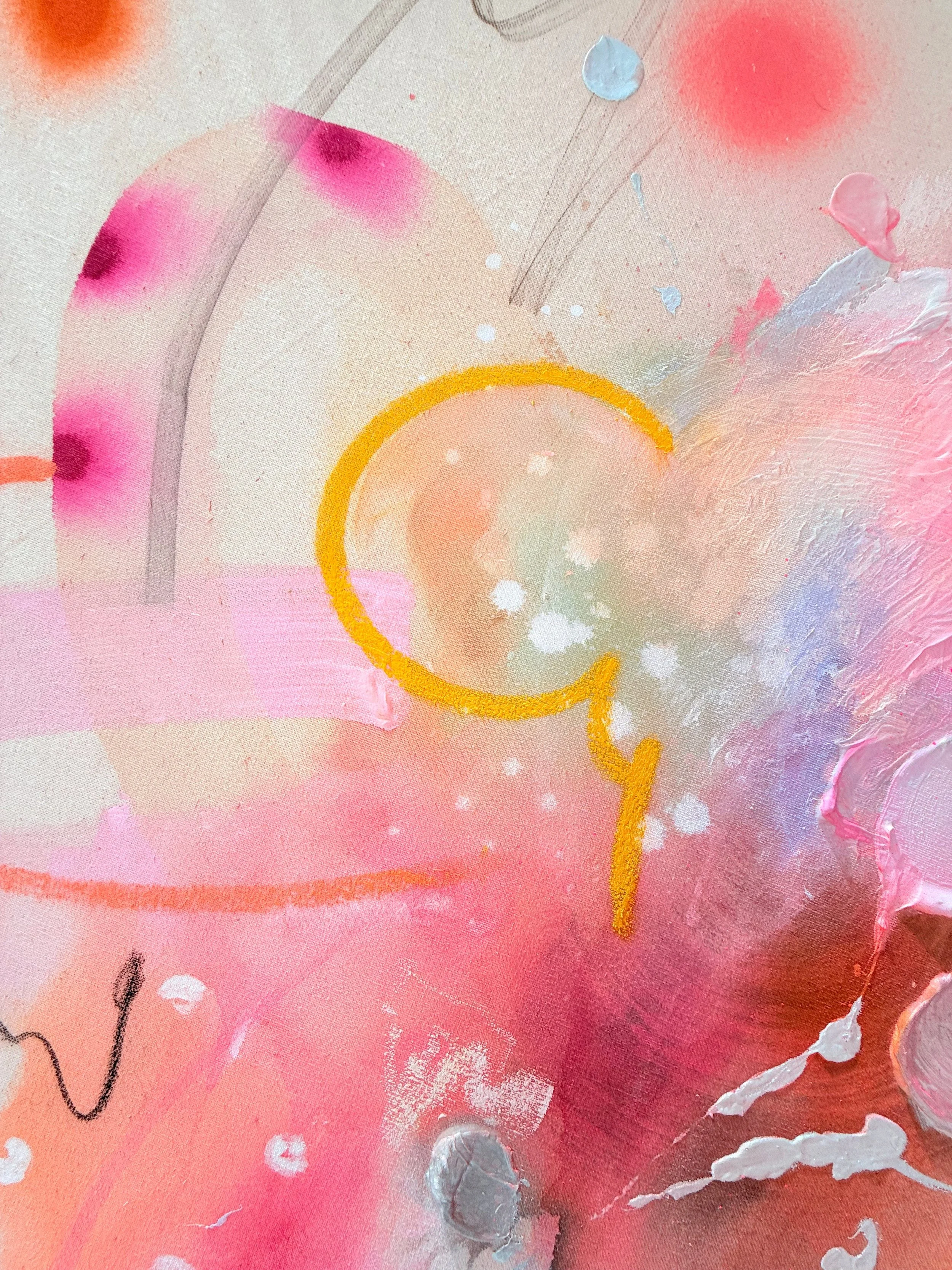 Fließende Formen, zarte Strukturen und leuchtende Nuancen bringen Energie und Stille zugleich auf die Leinwand. Ich folge keinem festen Plan – nur dem Moment. So wird jedes Werk ein ehrlicher Ausdruck von Lebendigkeit, Licht und Tiefe.